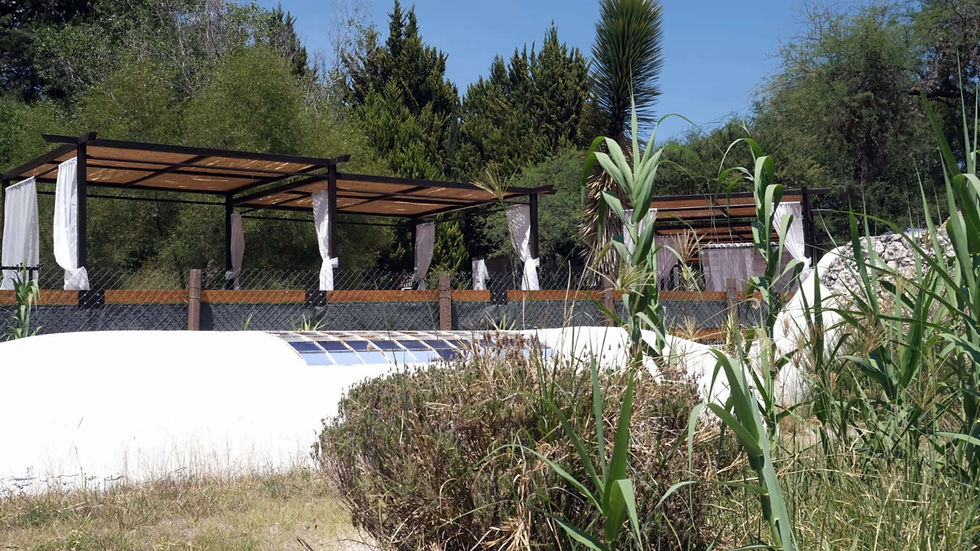 Arriviamo all'oasi in mezzo al deserto dove dovrebbero esserci le terme. Sono scettico. Vedo solo la solita arida steppa messicana e alcune lontane e seminascoste costruzioni. Sono quelle della "balneara" (stabilimento termale) che si chiama appunto "Escondido". L'oasi è un incanto. Improvvisamente, oltrepassata la curvatura di una collina, si apre una vista celestiale di un Eden finalmente verdeggiante. La ricchezza di alberi e palmeti e canneti e pozze d'acqua e rivoli e cascatelle mi lascia come inebetito. E lo sono effettivamente, ma per il grande caldo e per l'aspettativa dell'acqua calda che ancora mi sconvolge. In questo momento ho solo un desiderio, quasi un miraggio, semplice e bambinesco, di una grossa fetta di rossa e fresca anguria. Con questa speranza mi faccio coraggio. L'anguria non c'è, ma la frescura degli alberi mi conforta e mi confortano le sdraio i gazebo, una piscina che mi sembra normale (di acqua fresca) e le bibite ghiacciate. Il posto è molto bello e non sembra di essere in mezzo ad un quasi-deserto.