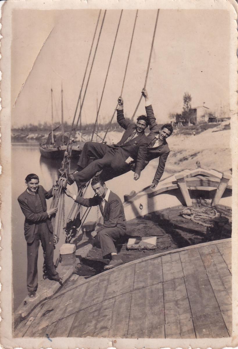 Papà, il primo a sinistra, con amici in un burcio sulla Piave